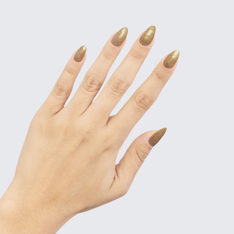 Run the show with this translucent polish full of gold shimmer.